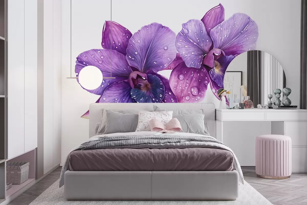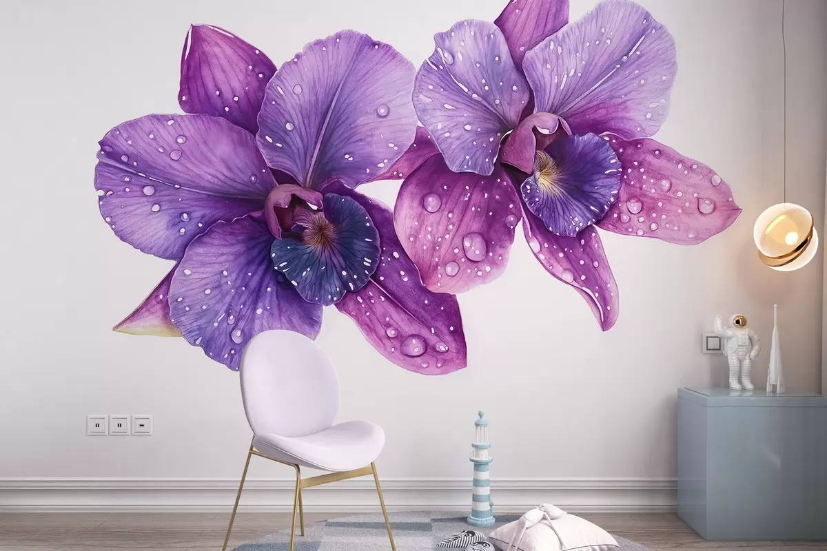 Fototapeta Piękne kwiaty orchidei, rysunek w stylu akwareli, fioletowe kolory Nr w03164