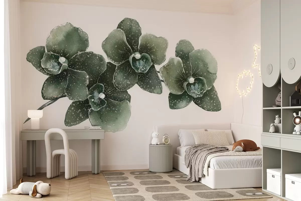 Fototapeta Gałązka kwiatu Orhid, styl akwareli, kwiatowy, zielone kolory Nr w03165v1