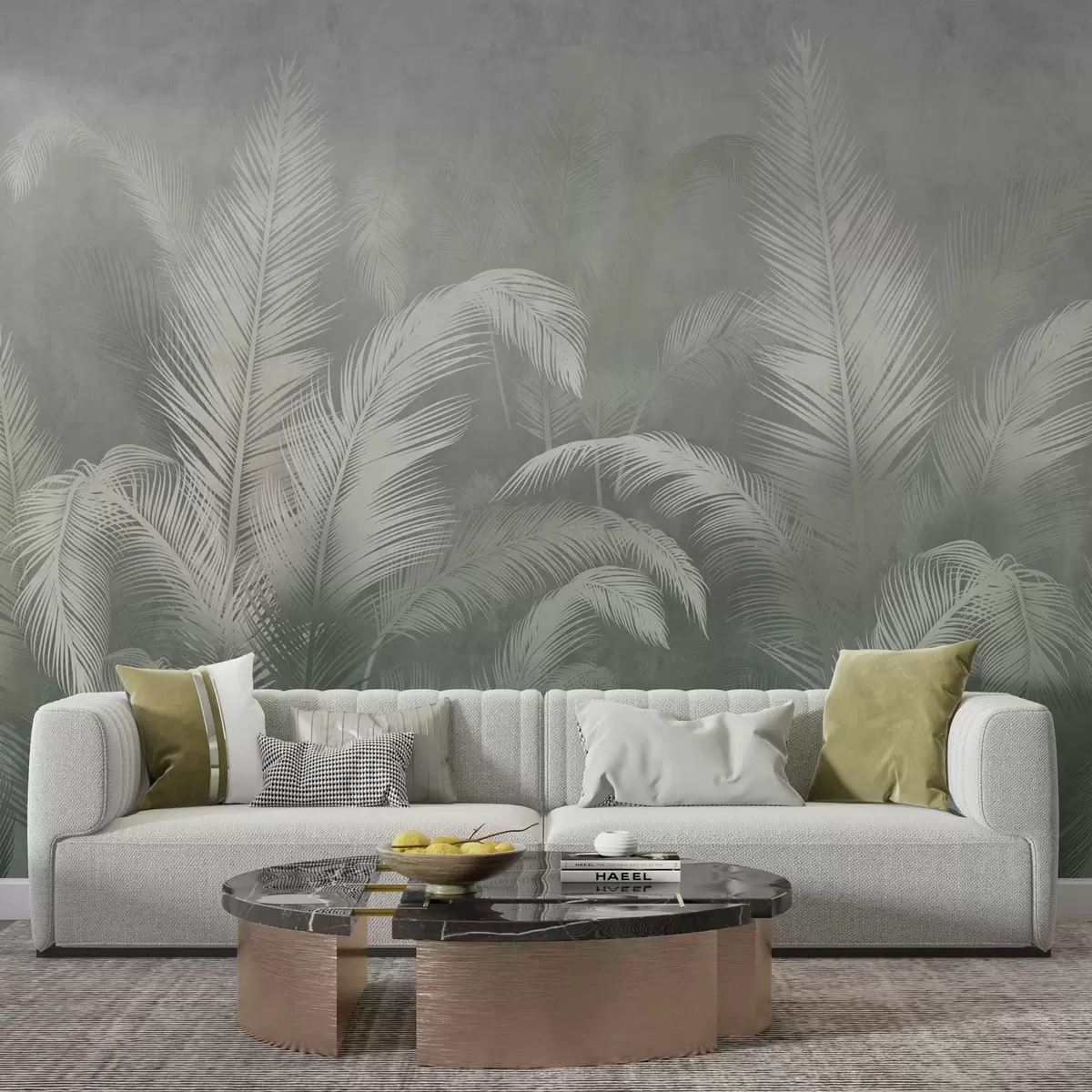 Fototapeta Tropikalne liście palmy w stylu grunge w kolorze zielonym Nr w03250v2