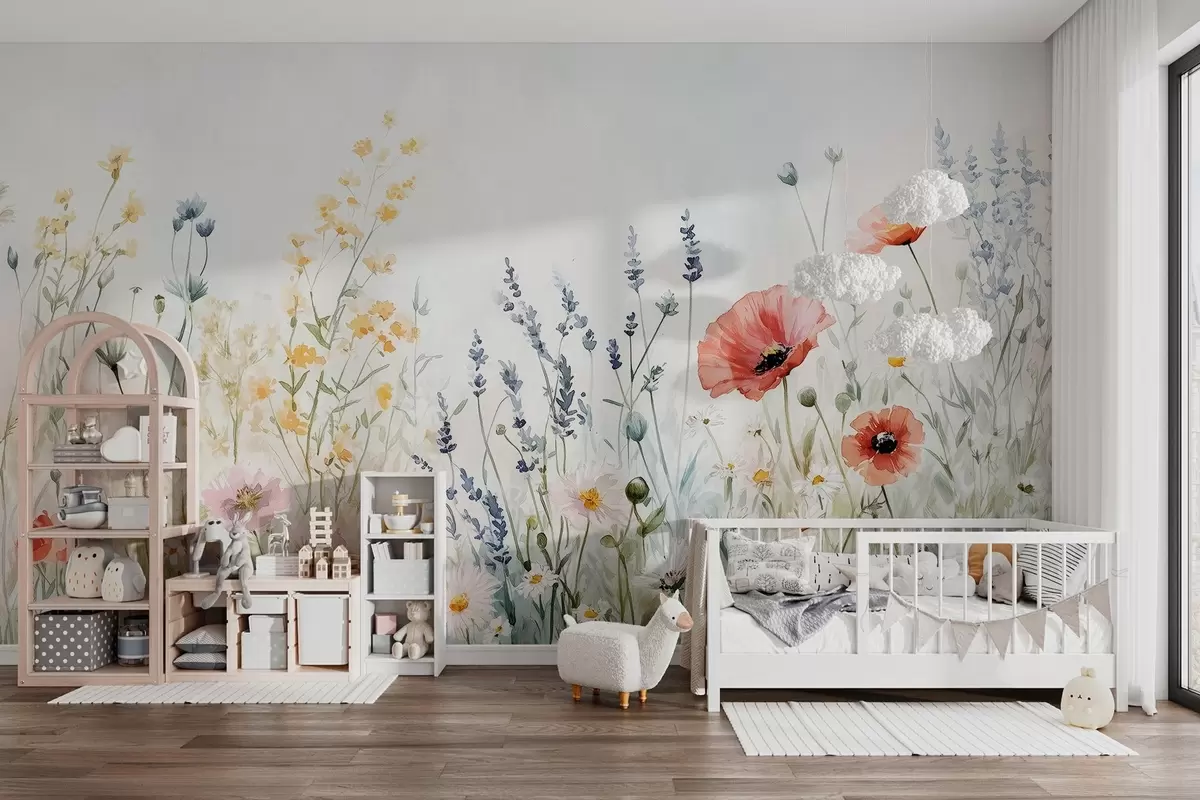 Fototapeta polne kwiaty i maki w technice pociągnięć Nr w03281