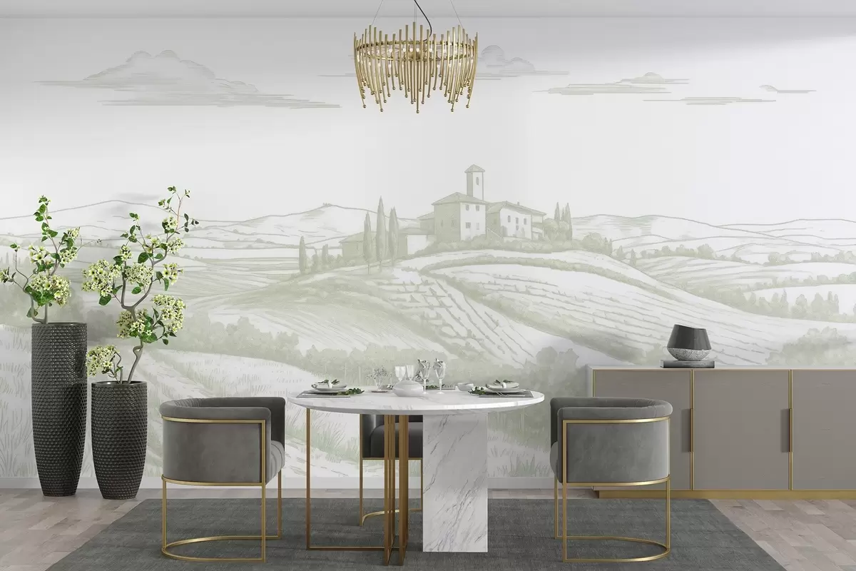 Fototapeta Toskańskie krajobrazy, Włochy, winnice, przyroda, stary zamek, zielone kolory Nr w03349v2
