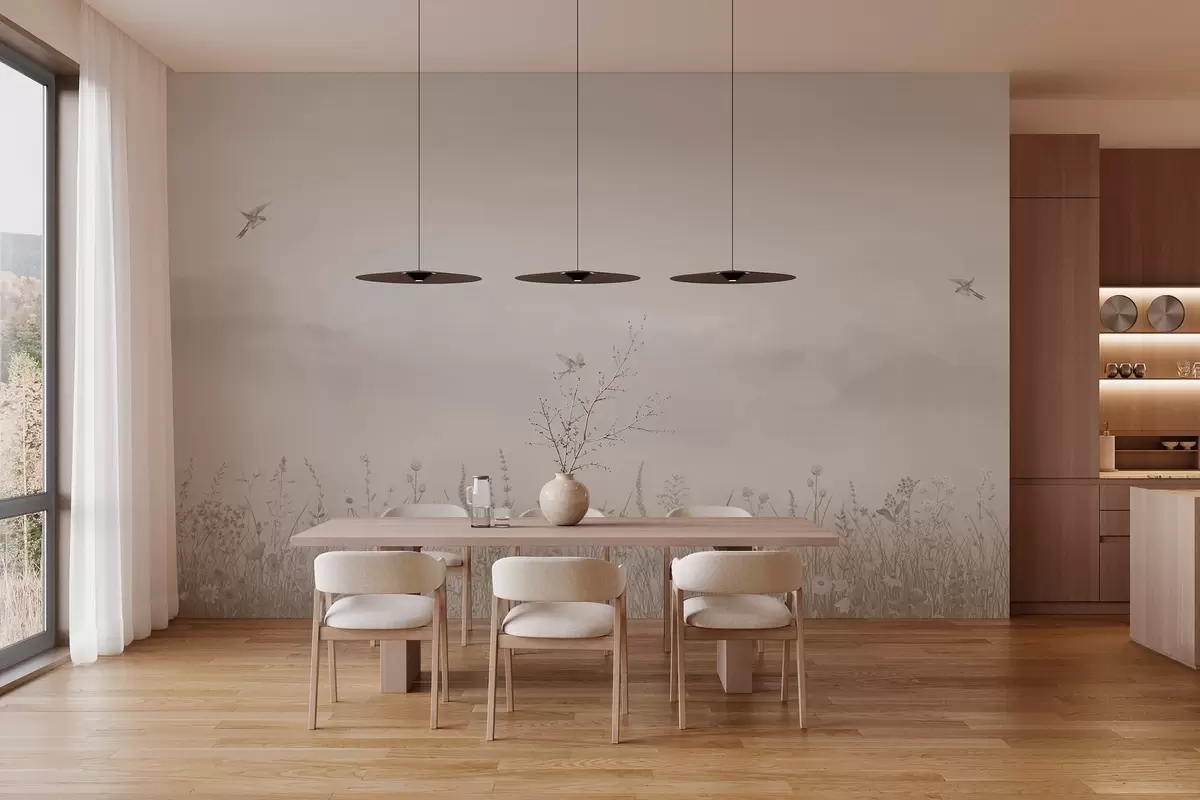Fototapeta Dzikie kwiaty i zamglone niebo w beżowych odcieniach Nr w03391v2
