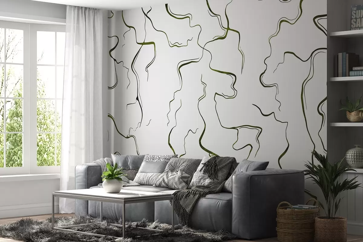 Fototapeta Geometryczne linie, styl tuszu, abstrakcja, zielone kolory Nr w03436