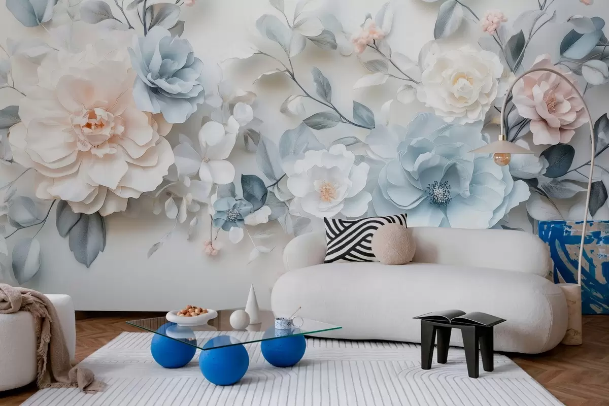 Fototapeta Delikatne, zwiewne kwiaty z efektem objętości w stylu malarstwa olejnego Nr w03457