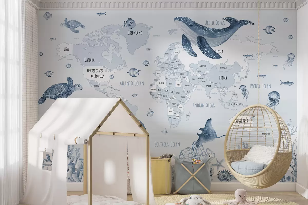 Fototapeta Podwodny świat z mapą świata Nr w03526v3
