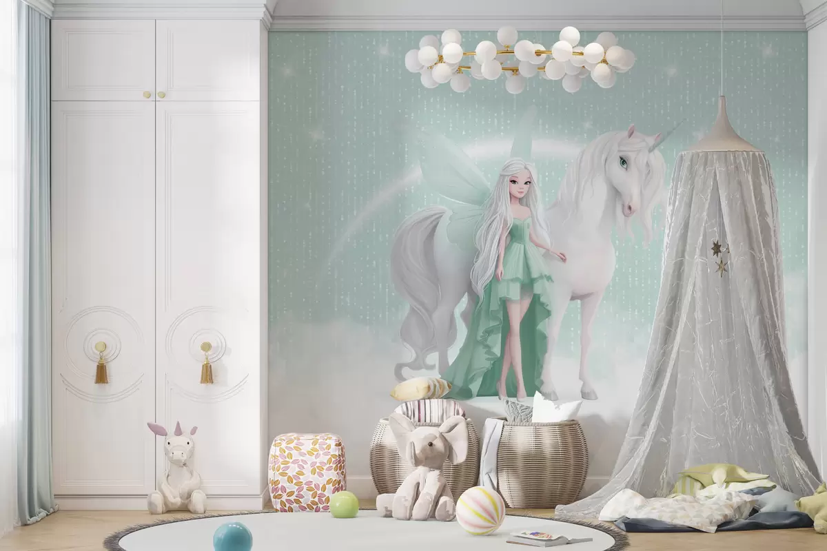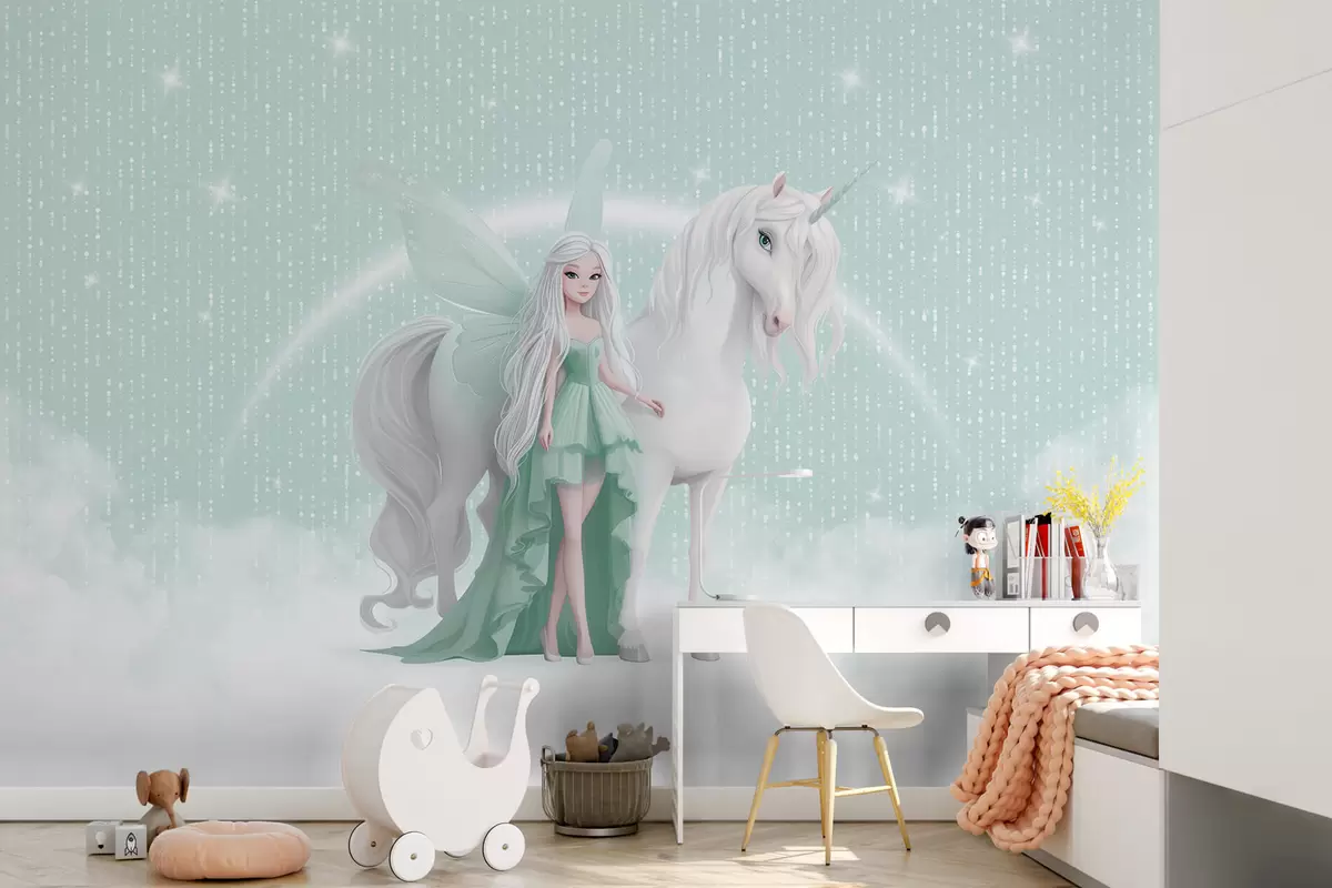 Fototapeta Wróżka z jednorożcem wśród chmur Nr w03527v2