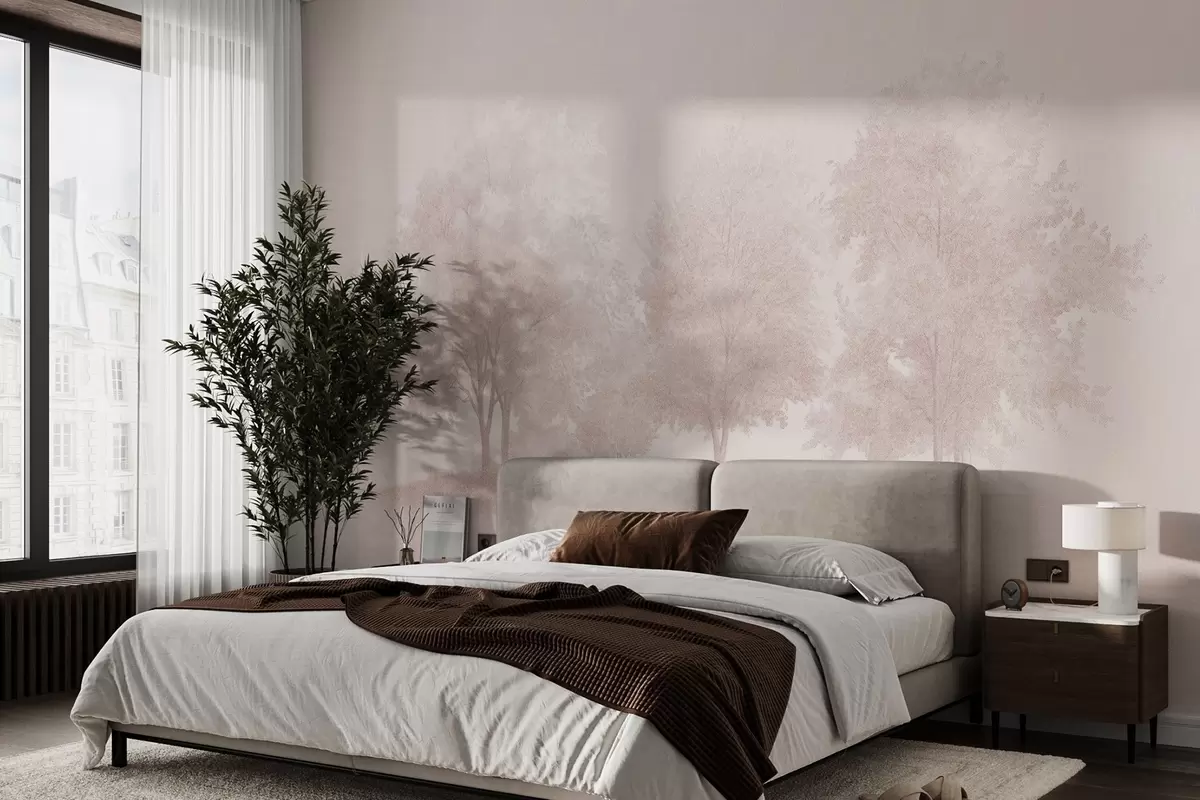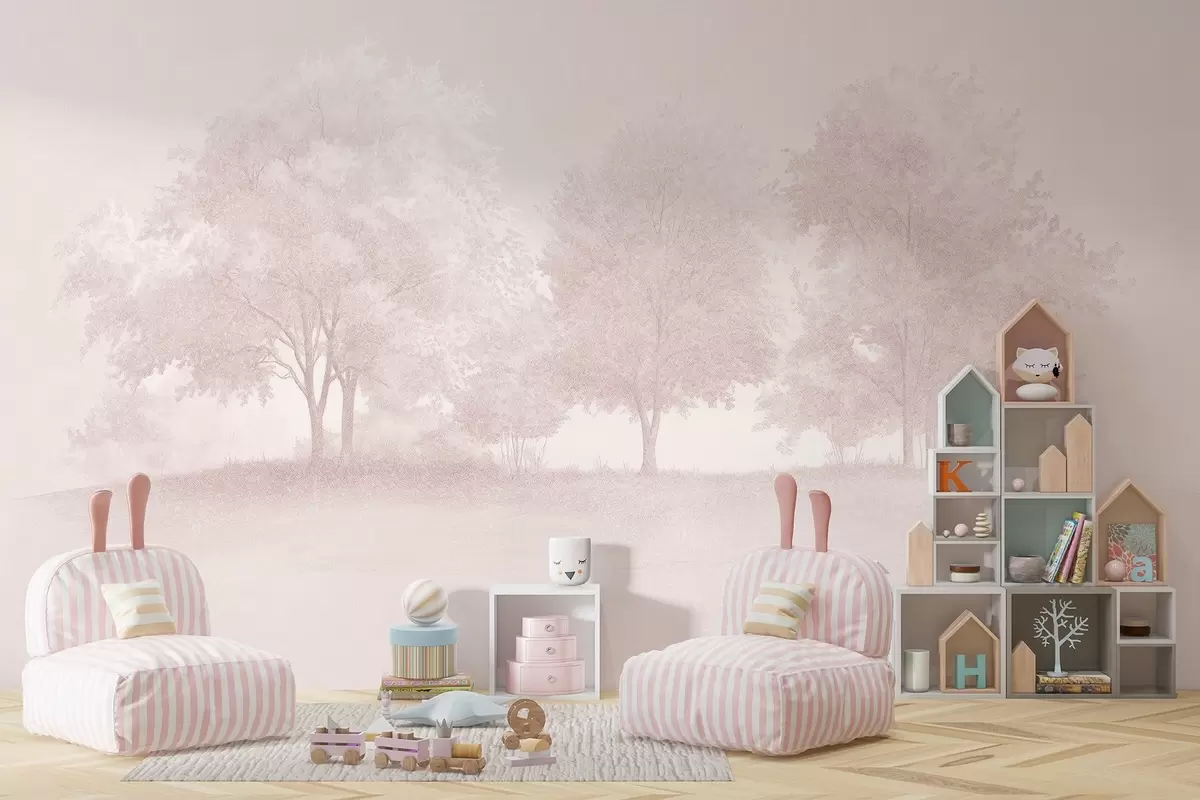 Fototapeta Kwitnące drzewa, wiosna, rysunek ołówkiem, różowe kolory, natura Nr w03549