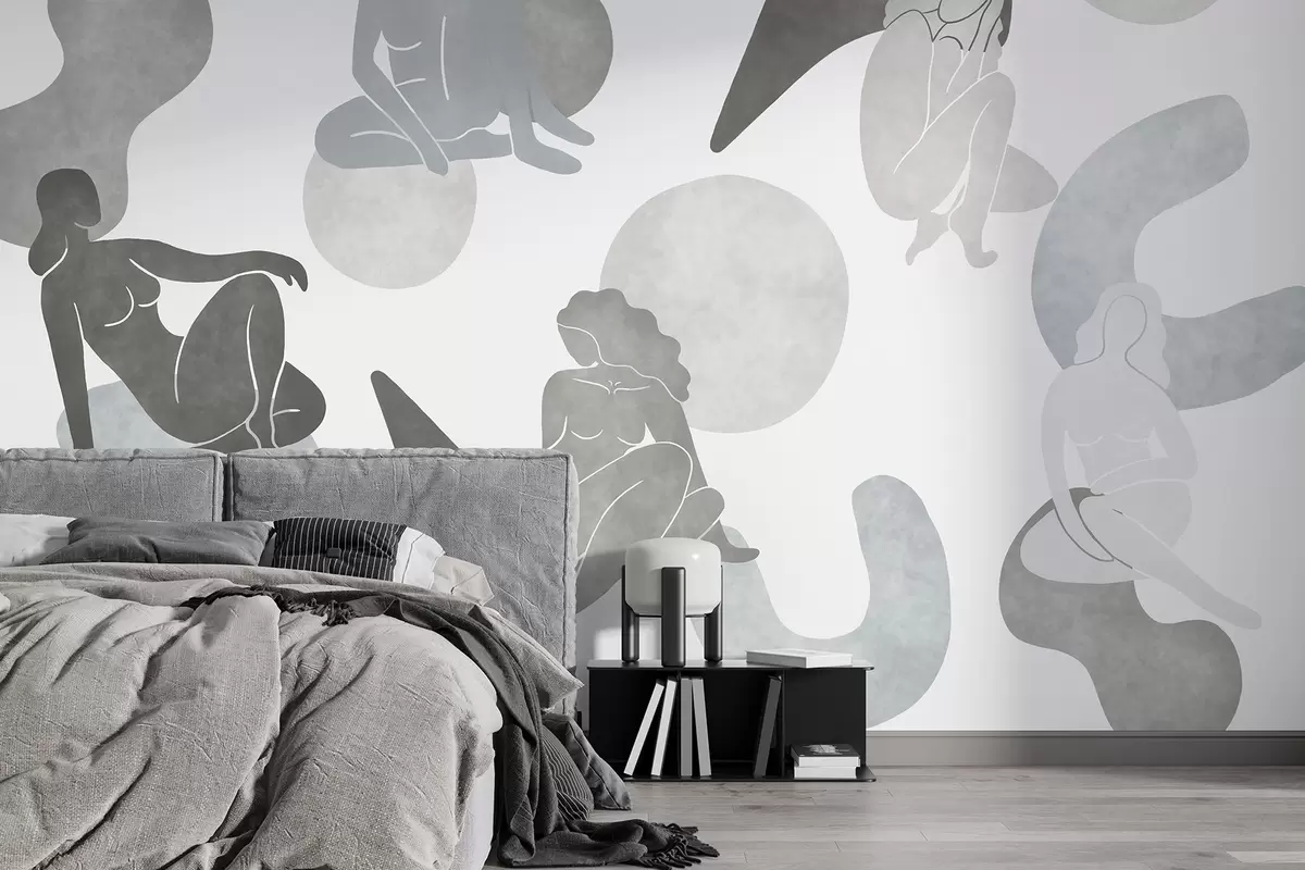 Fototapeta Geometryczne abstrakcje z kobiecymi sylwetkami, styl boho, szare kolory Nr w03753v5