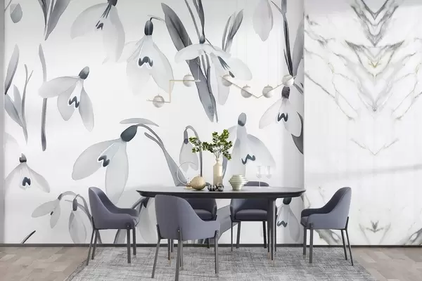 Fototapeta Kwiaty przebiśniegów w stylu akwareli, szare kolory Nr w03754v1