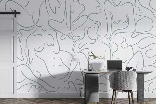 Fototapeta Rysunek linii anatomicznych sylwetek, abstrakcja, kolor niebieski Nr w03755v1