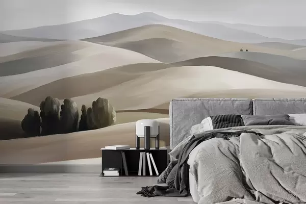 Fototapeta Krajobrazy z drzewami, Toskania, beżowe i szare kolory, styl olejny Nr w03880v1