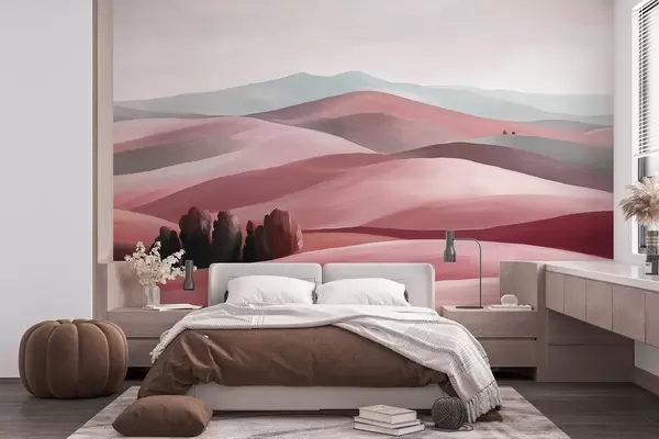 Fototapeta Krajobrazy z drzewami, Toskania, różowe kolory, styl olejny Nr w03880v2