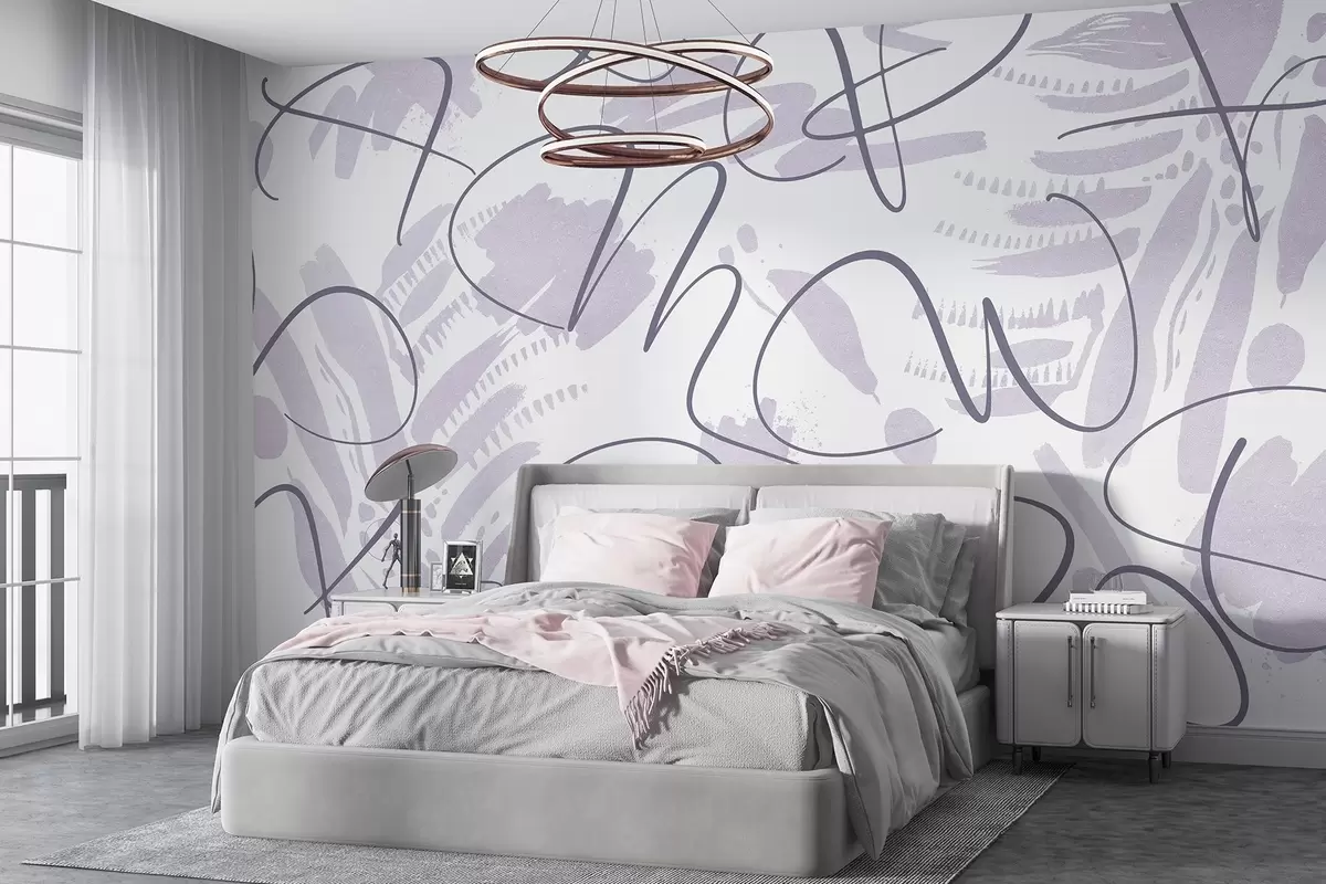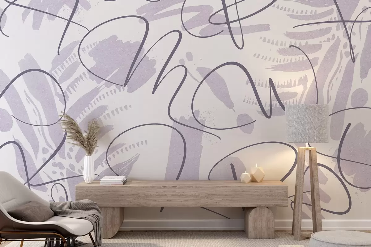 Fototapeta Kaligraficzna abstrakcja z literami, pociągnięcia pędzla, fioletowy kolor Nr w03913v2