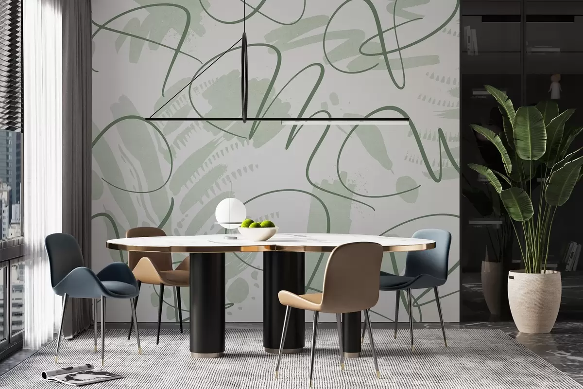 Fototapeta Kaligraficzna abstrakcja z literami, pociągnięcia pędzla, zielony kolor Nr w03913v3