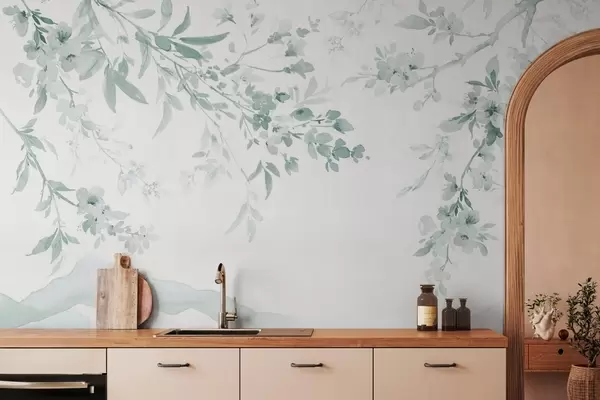 Fototapeta Kwitnące gałęzie, imitacja akwareli, odcienie zieleni Nr w03935v3