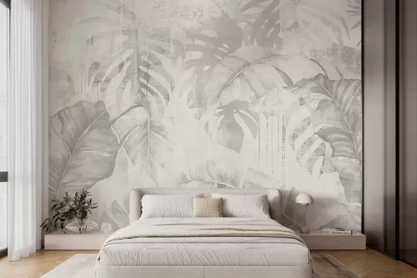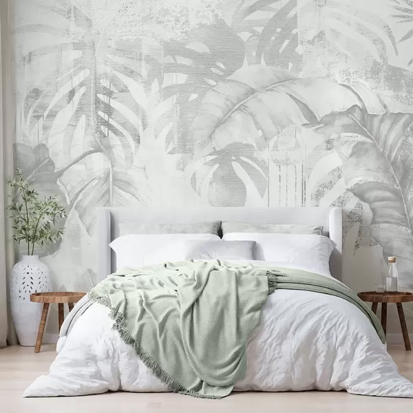 Fototapeta Tropikalne liście w stylu grunge, monochromatyczne odcienie Nr w03956v1