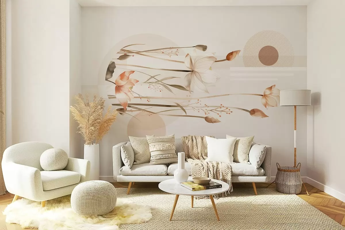 Fototapeta pastelowe lilie i geometria boho Nr w03964