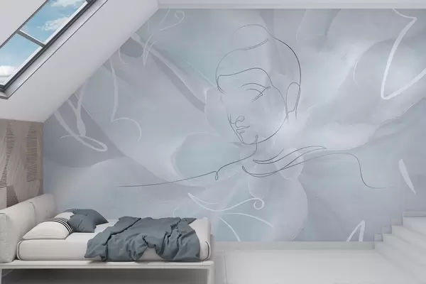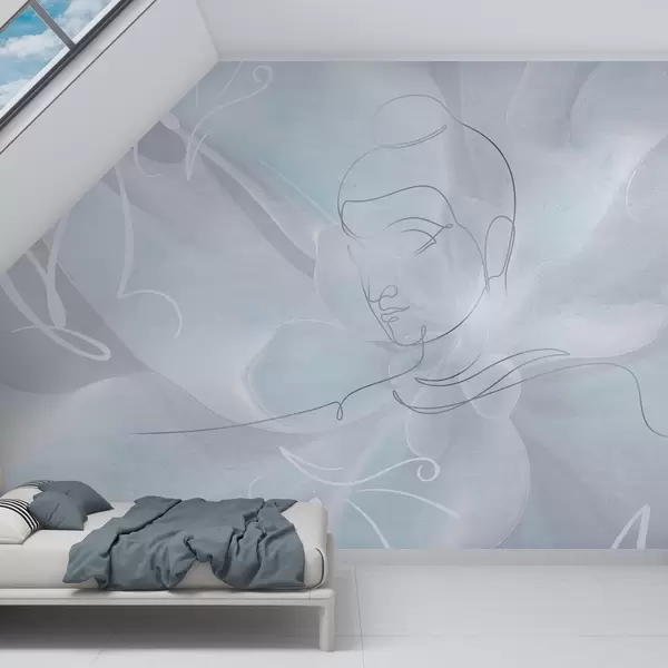 Fototapeta Kwiatowa abstrakcja z rysunkiem Buddy, niebieskie kolory Nr w04004v1