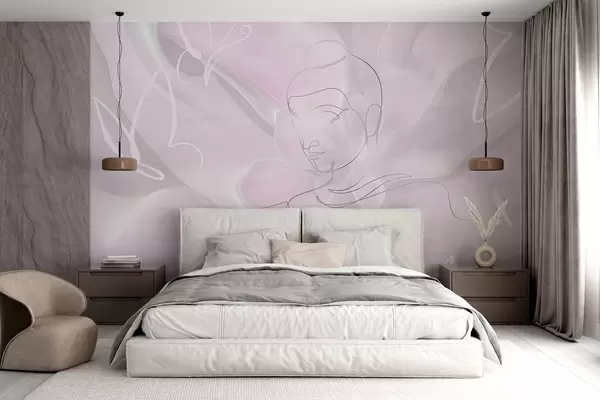 Fototapeta Kwiatowa abstrakcja z rysunkiem Buddy, różowe kolory Nr w04004v2