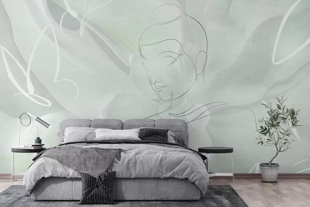 Fototapeta Kwiatowa abstrakcja z rysunkiem Buddy, zielone kolory Nr w04004v3