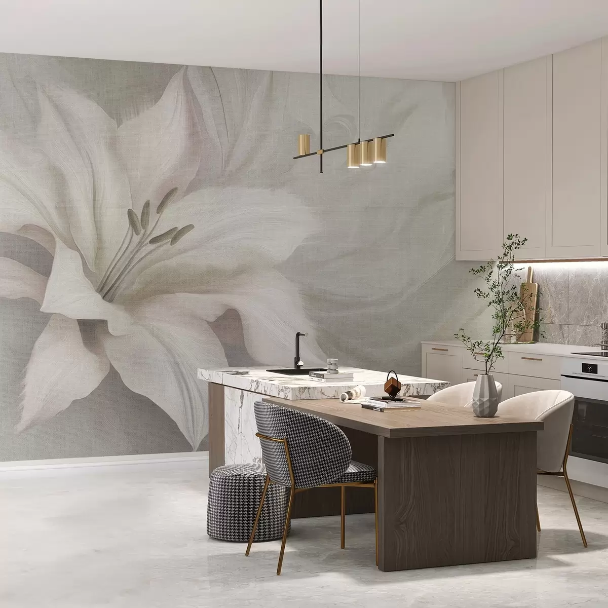 Fototapeta Kwiat lilii płynna abstrakcja, kwiatowy, szare kolory Nr w04006v2