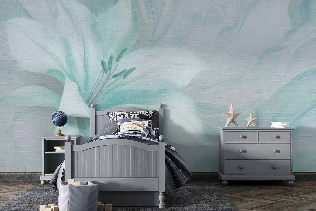 Fototapeta Kwiat lilii płynna abstrakcja, kwiatowy, kolory akwamaryny Nr w04006v3