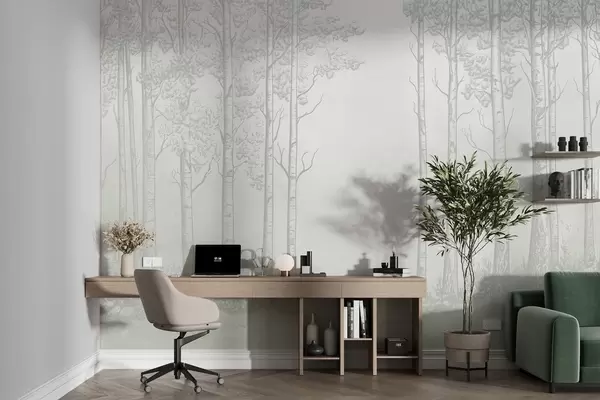 Fototapeta Las z brzozami, minimalizm, natura, zielona paleta kolorów Nr w04009v1