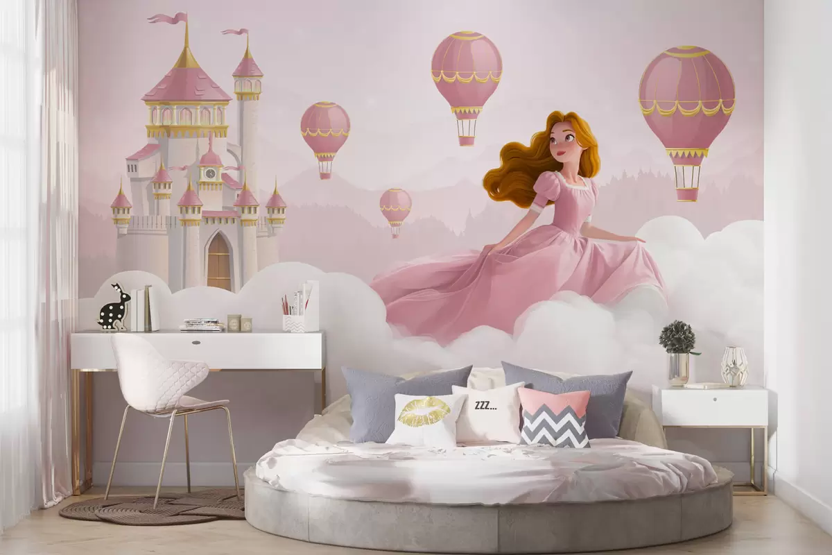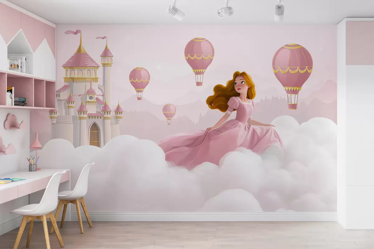 Fototapeta Księżniczka wśród chmur na tle krajobrazu z zamkiem Nr w04015v1