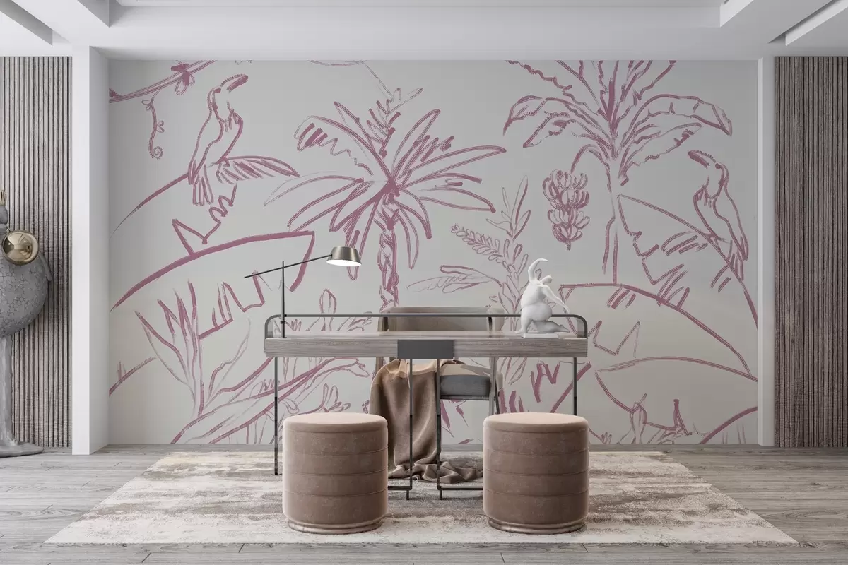 Fototapeta Tropikalne linie w kolorze różowym, tropikalne rośliny, banany Nr w04020v2