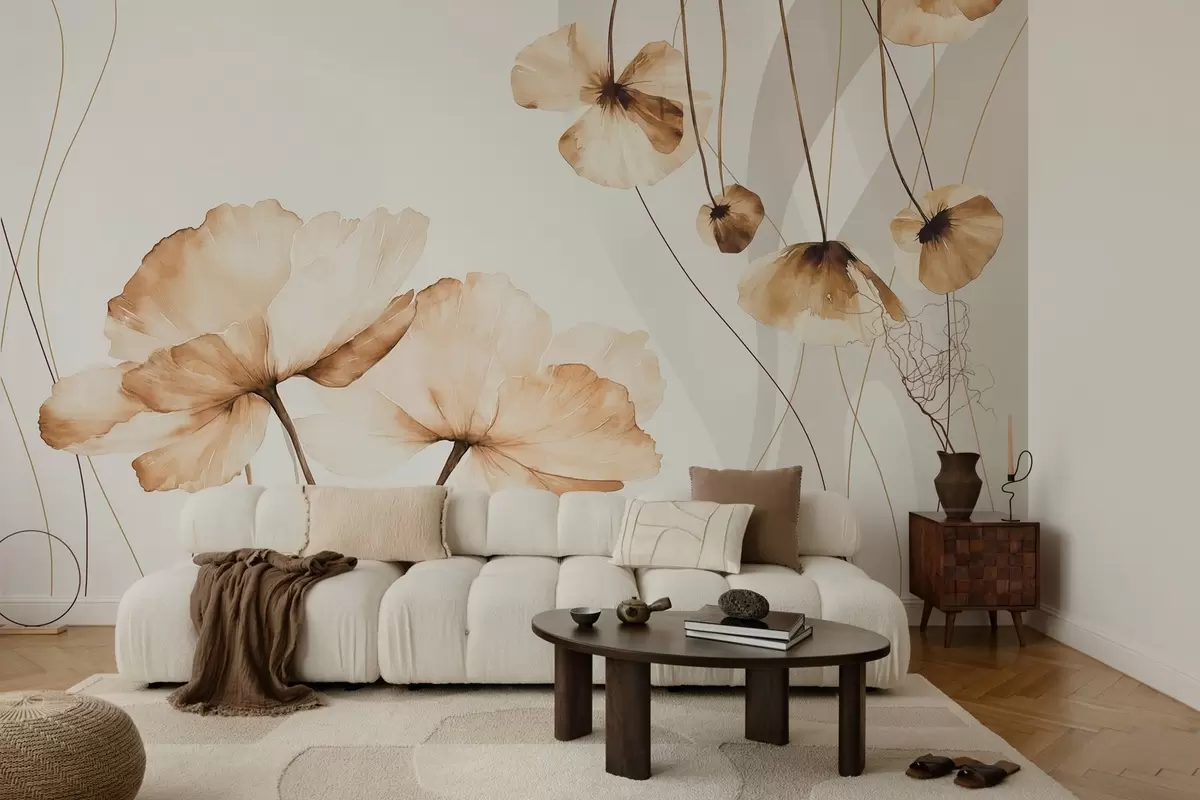 Fototapeta akwarelowe kwiaty w odcieniach brązu Nr w04026