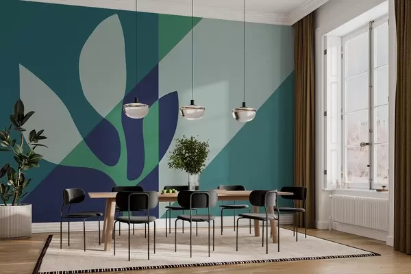 Fototapeta abstrakcyjna grafika rośliny na tle geometrii w odcieniach niebieskiego Nr w04028v1