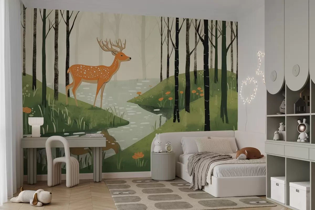 Fototapeta Las wróżek z olemenami i strumieniem Nr w04059