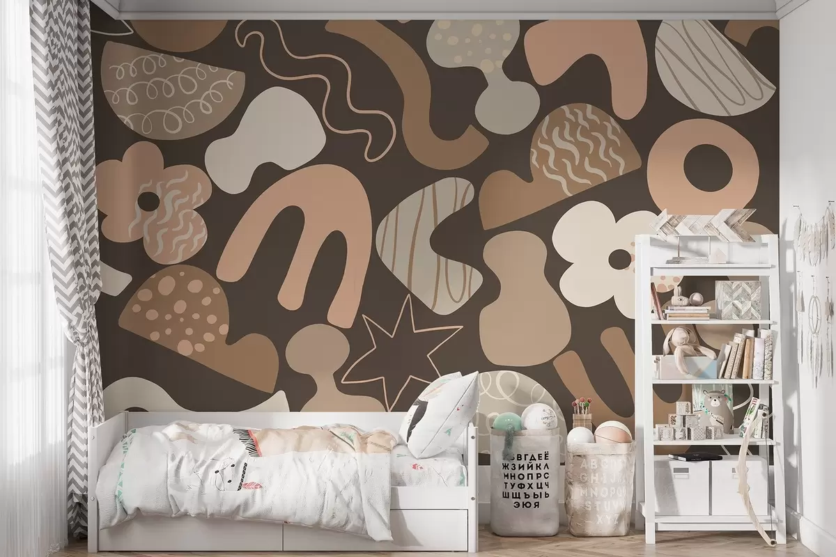 Fototapeta Geometryczne figury z rysunkiem bazgrołów, nieletni, ciemnobeżowe tło Nr w04068v1