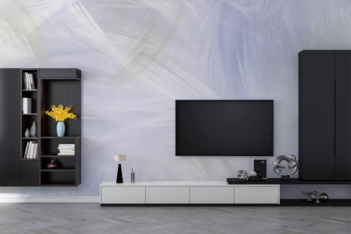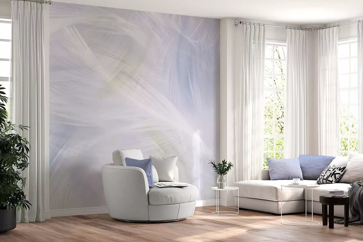Fototapeta zwiewne pióra w odcieniach beżu i błękitu Nr w04071v1