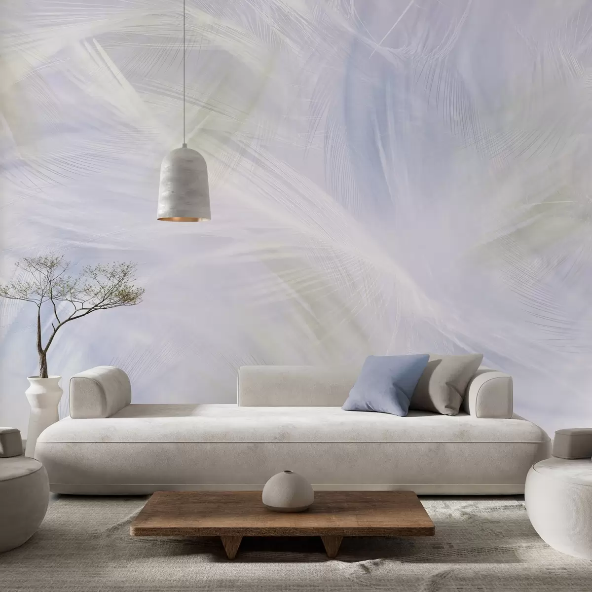 Fototapeta zwiewne pióra w odcieniach beżu i błękitu Nr w04071v1