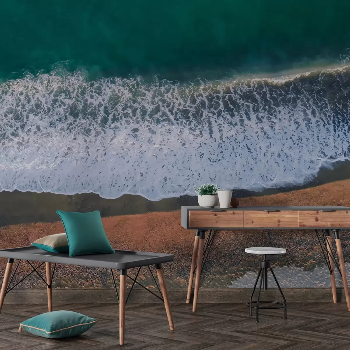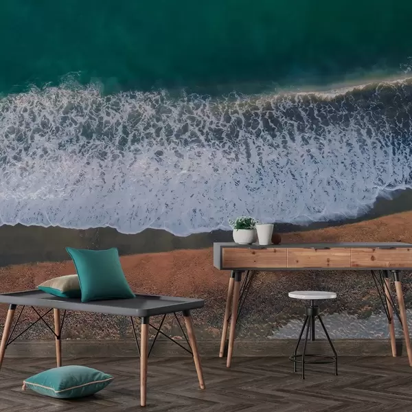Fototapeta Fale oceanu, plaża, fotografia lotnicza, realizm, lato Nr w04095