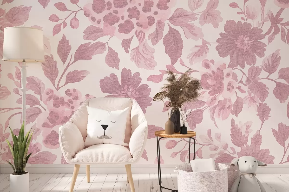 Fototapeta Kwiaty w stylu boho z nadrukiem lamparta, kolor różowy Nr w04114v3