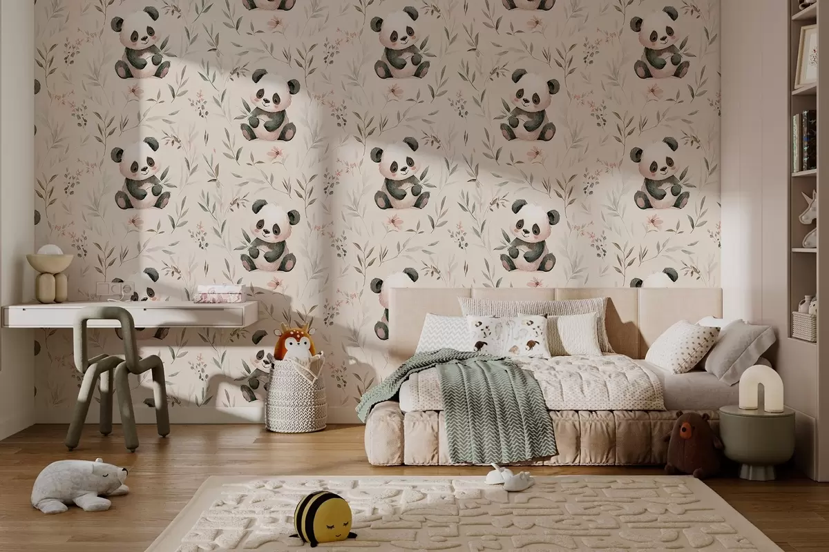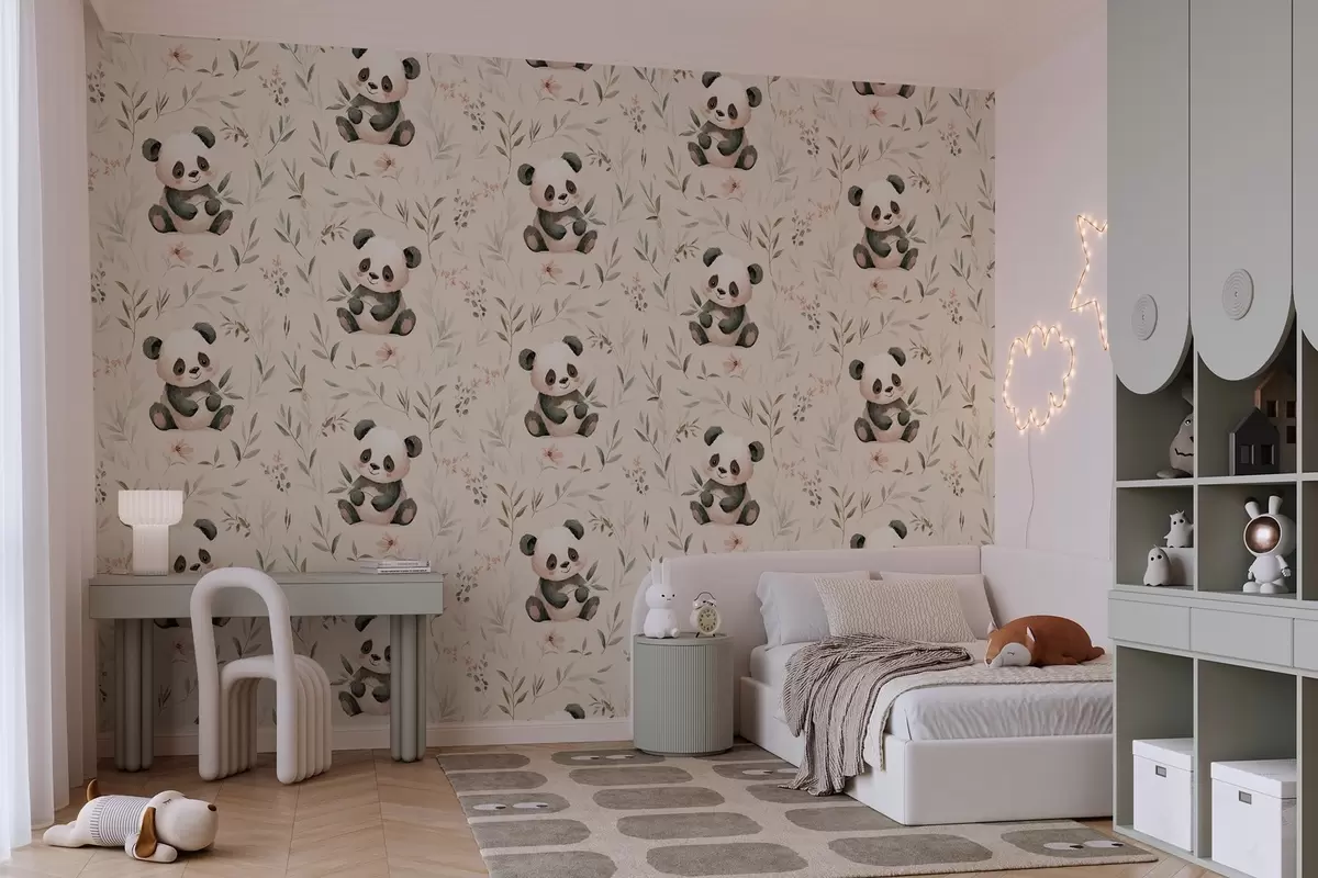 Fototapeta urocze pandy w stylu dziecka wśród roślin Nr w04170