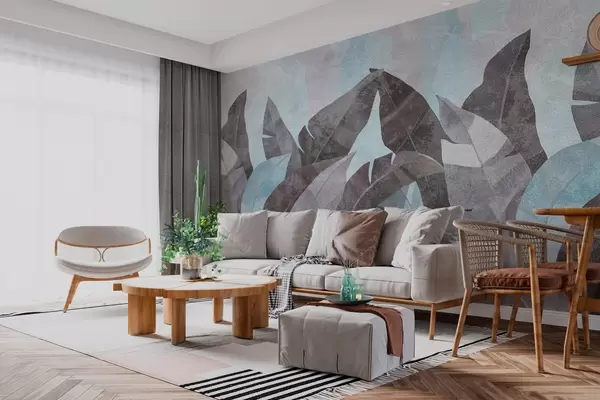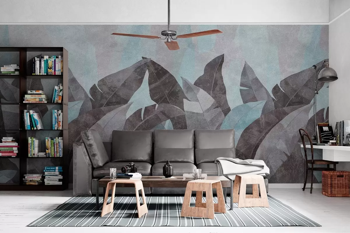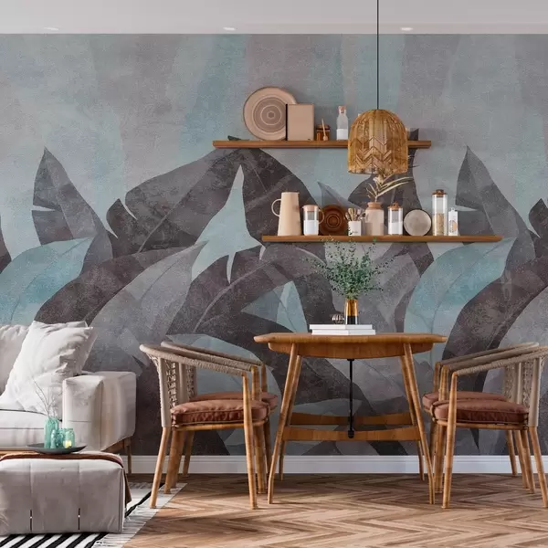 Fototapeta teksturowane liście bananowca w odcieniach niebieskiego i szarego Nr w04285v2