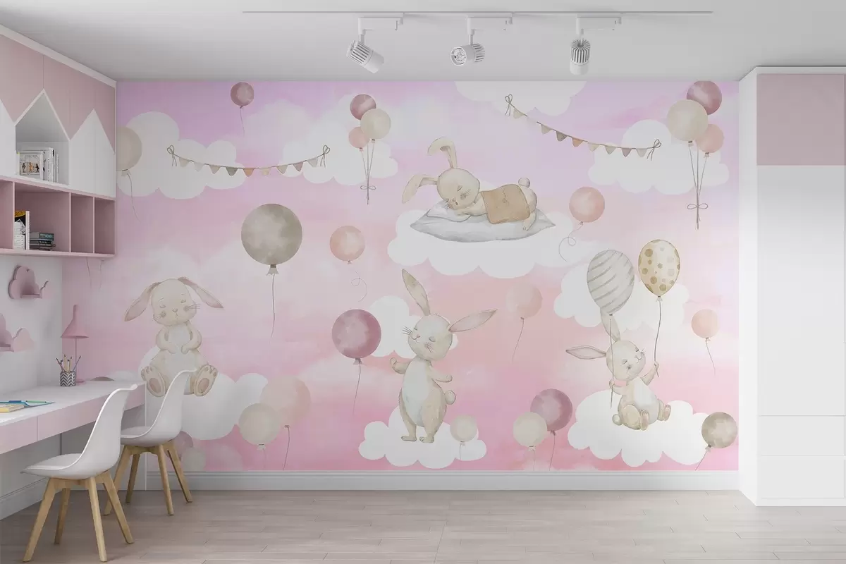 Fototapeta Króliki z balonami na chmurach Nr w04337v1