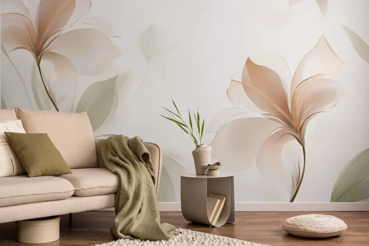 Fototapeta Przezroczyste kwiaty w ciepłych odcieniach beżu i różu Nr w04397