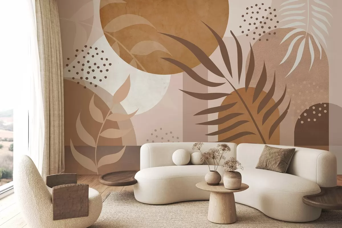Fototapeta Współczesna abstrakcja z roślinami w odcieniach brązu i beżu Nr w04497