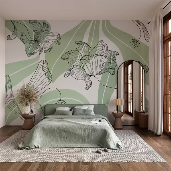 Fototapeta abstrakcyjne liście i kwiaty w odcieniach zieleni Nr w04499v1