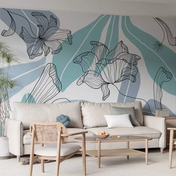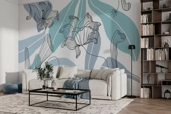 Fototapeta abstrakcyjne liście i kwiaty w odcieniach niebieskiego Nr w04499v2