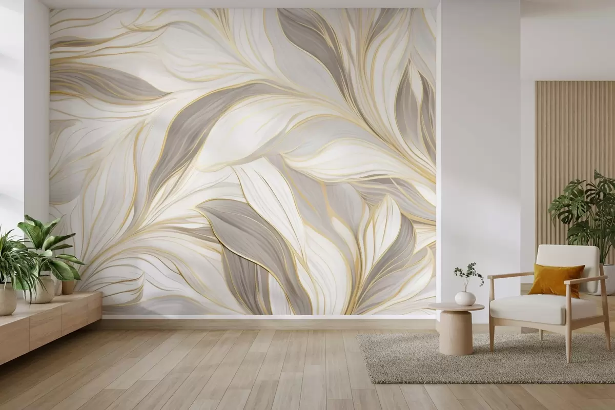 Fototapeta Liście o gładkich krzywiznach w jasnych odcieniach beżowo-szarych Nr w04609