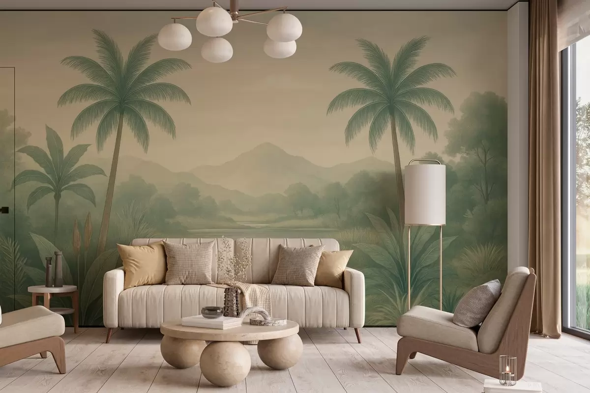 Fototapeta tropikalny krajobraz z palmami i rzeką Nr w04623
