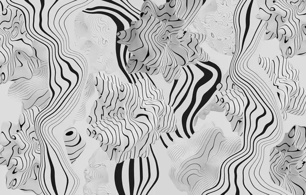 Fototapeta abstrakcyjne organiczne kształty w stylu 3D w odcieniach bieli i szarości z czarnymi paskami Nr w04627