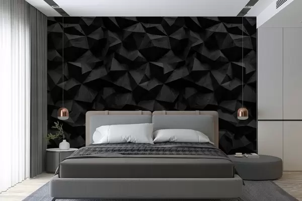 Fototapeta imitacja ściany z reliefem kanciastym wykonana z ciemnego drewna Nr w04632v1