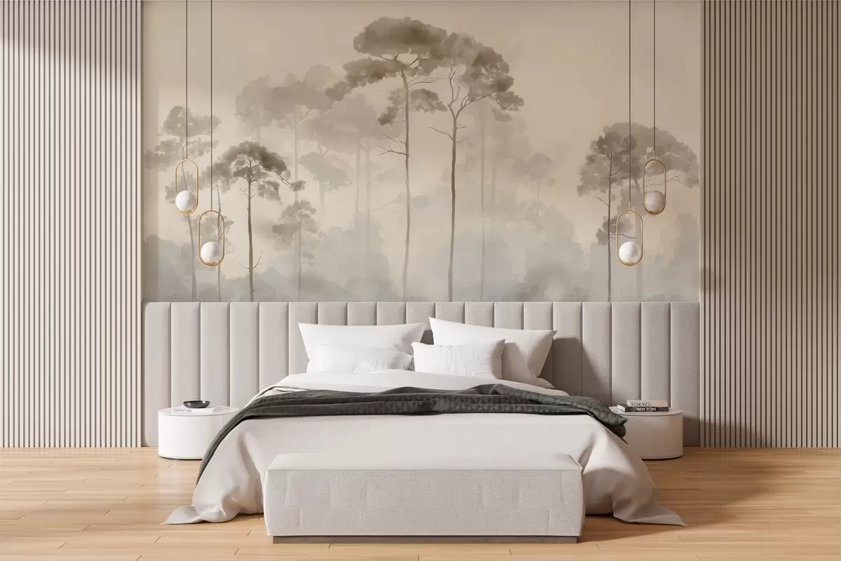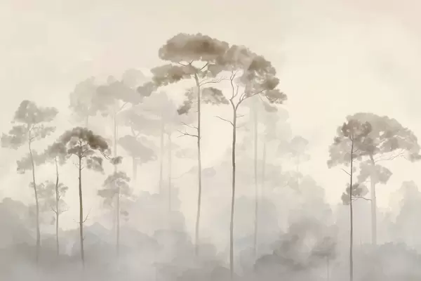 Fototapeta jasne sylwetki sosen w stylu akwareli Nr w04634