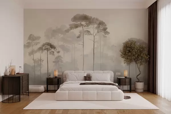 Fototapeta jasne sylwetki sosen w stylu akwareli Nr w04634